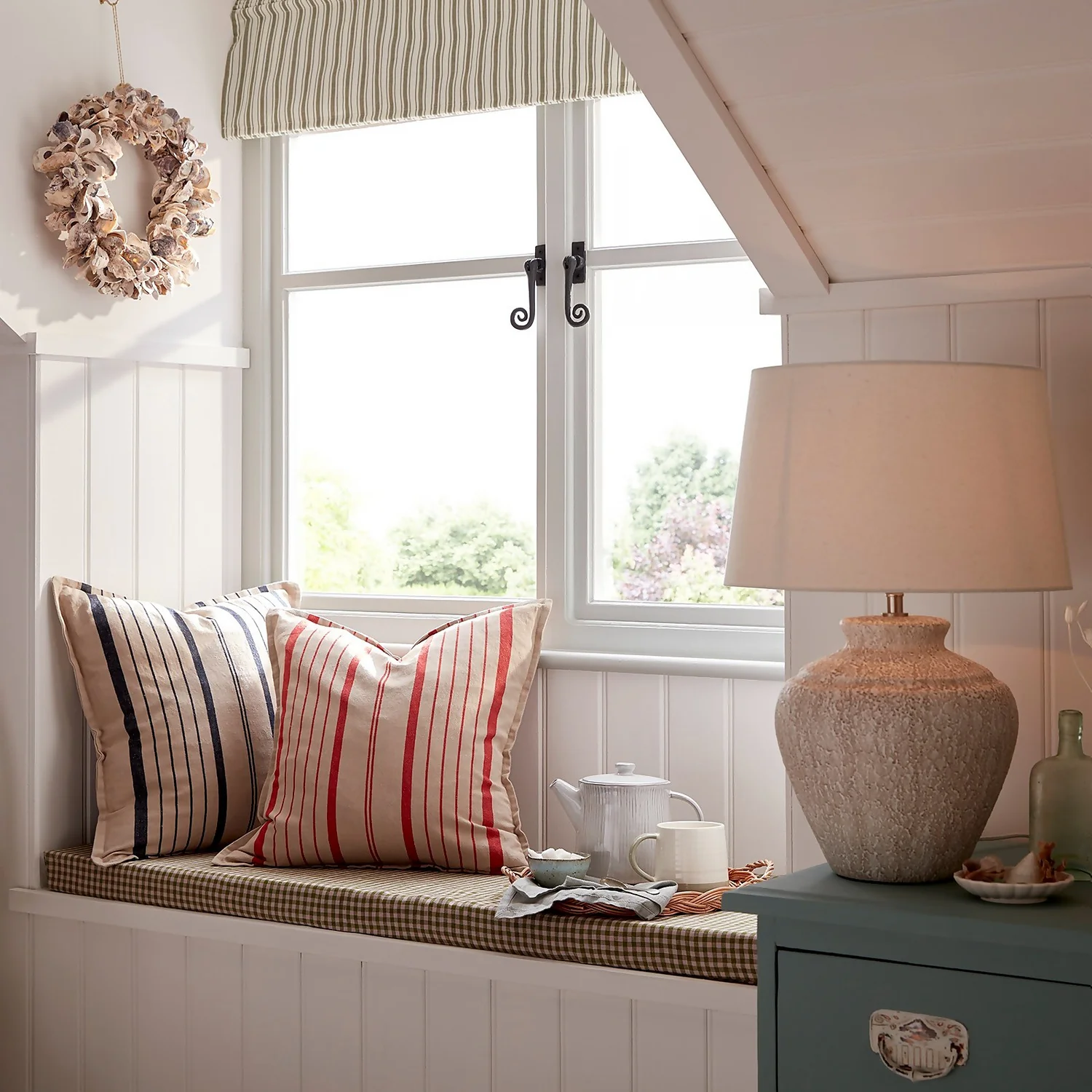 A beautiful, classic, woven stripe cushion with a 1cm flange detail. Made in pure cotton.