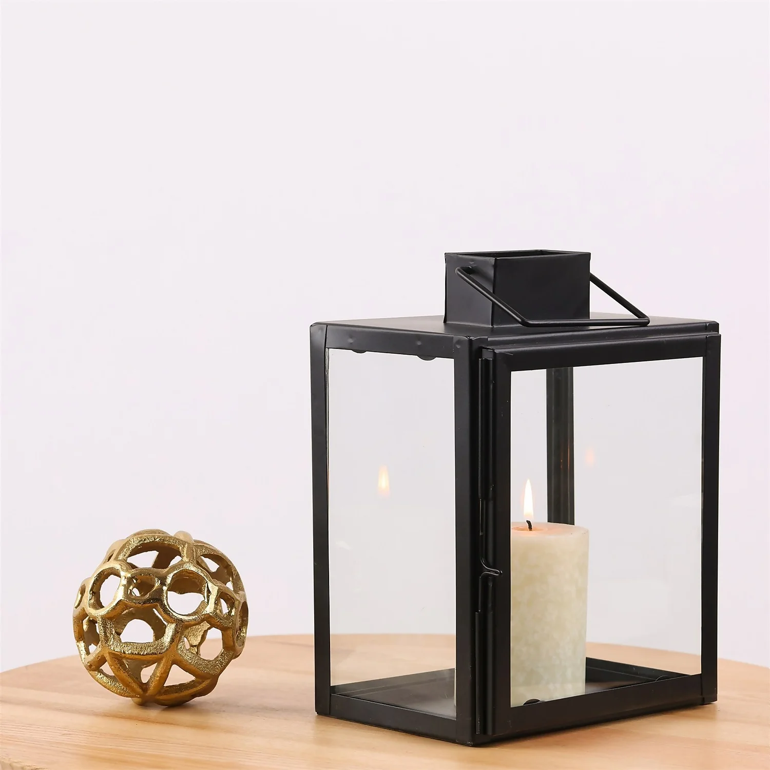 Iron part in powder coated and clear glass. Take your decor to the height of style with this small black lantern.