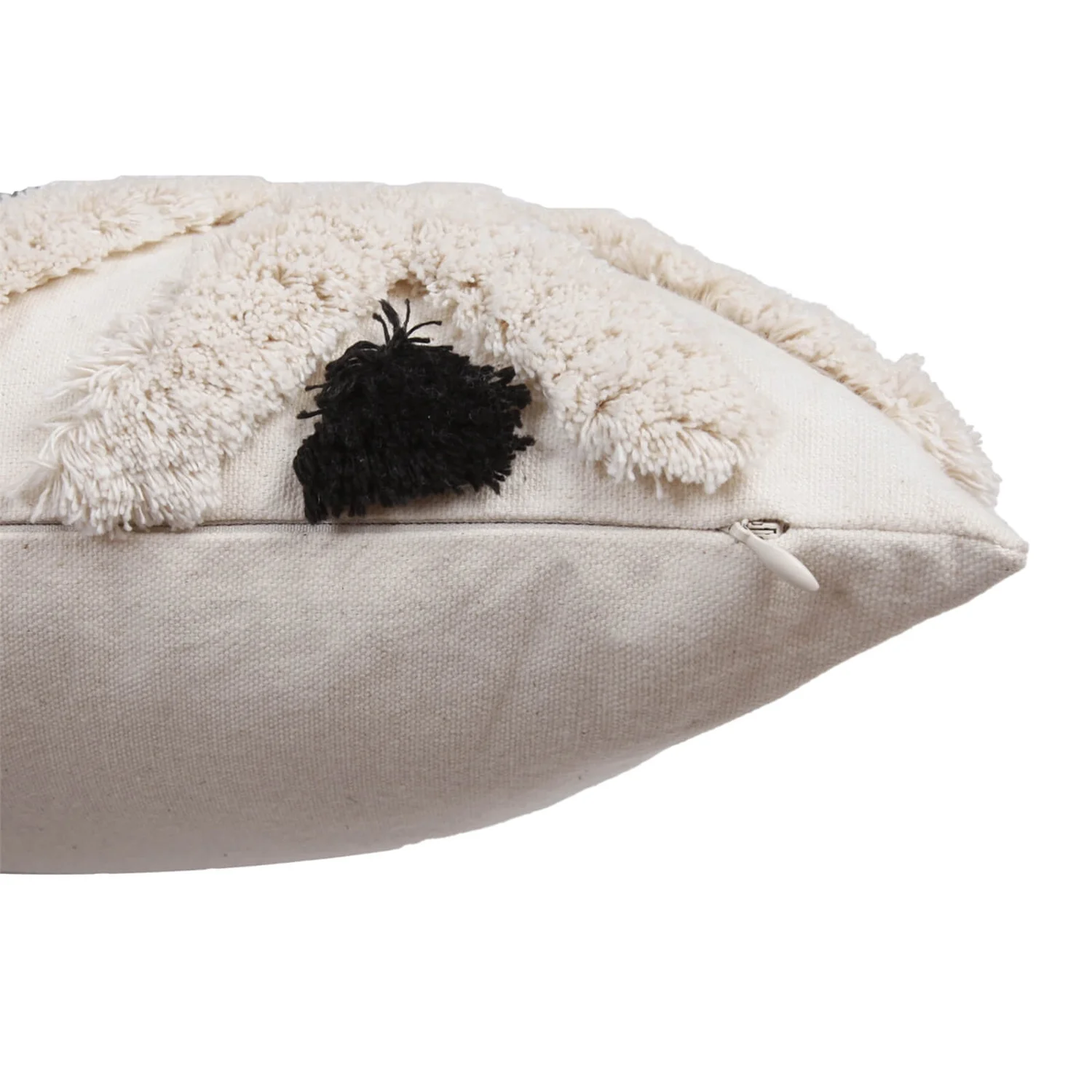 Add some Boho-chic to your sofa with this Aztec inspired, tufted geometric motif cushion. In mixed tones of natural and black with an accent of green. Plain cotton canvas reverse.
