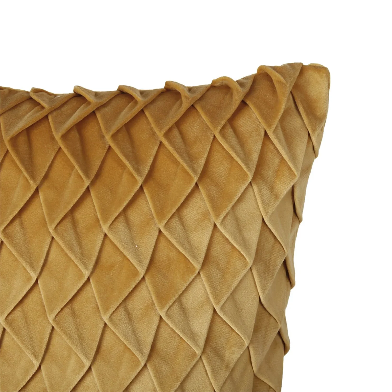 Geometric pintucked design in honey coloured plush velvet, with a plain plush velvet reverse.